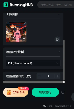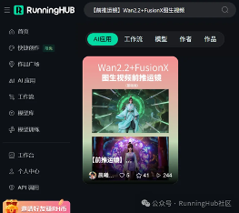 Mobile: Enter the RunningHub mini-program, search for the “Photo to Video Push-In Camera” template, and click to generate your video with one click.